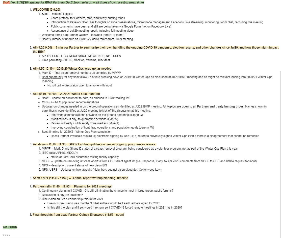 ** Presentation from Chris Geremia of NPS: 3-slide summary of NPS bison removal recommendations for the winter 2020/21 bison operations. (A reminder, as noted during the telecon, that these recommendations come from the following report, Status Report on the Yellowstone Bison Population, which was posted on the IBMP website in October 2020.)